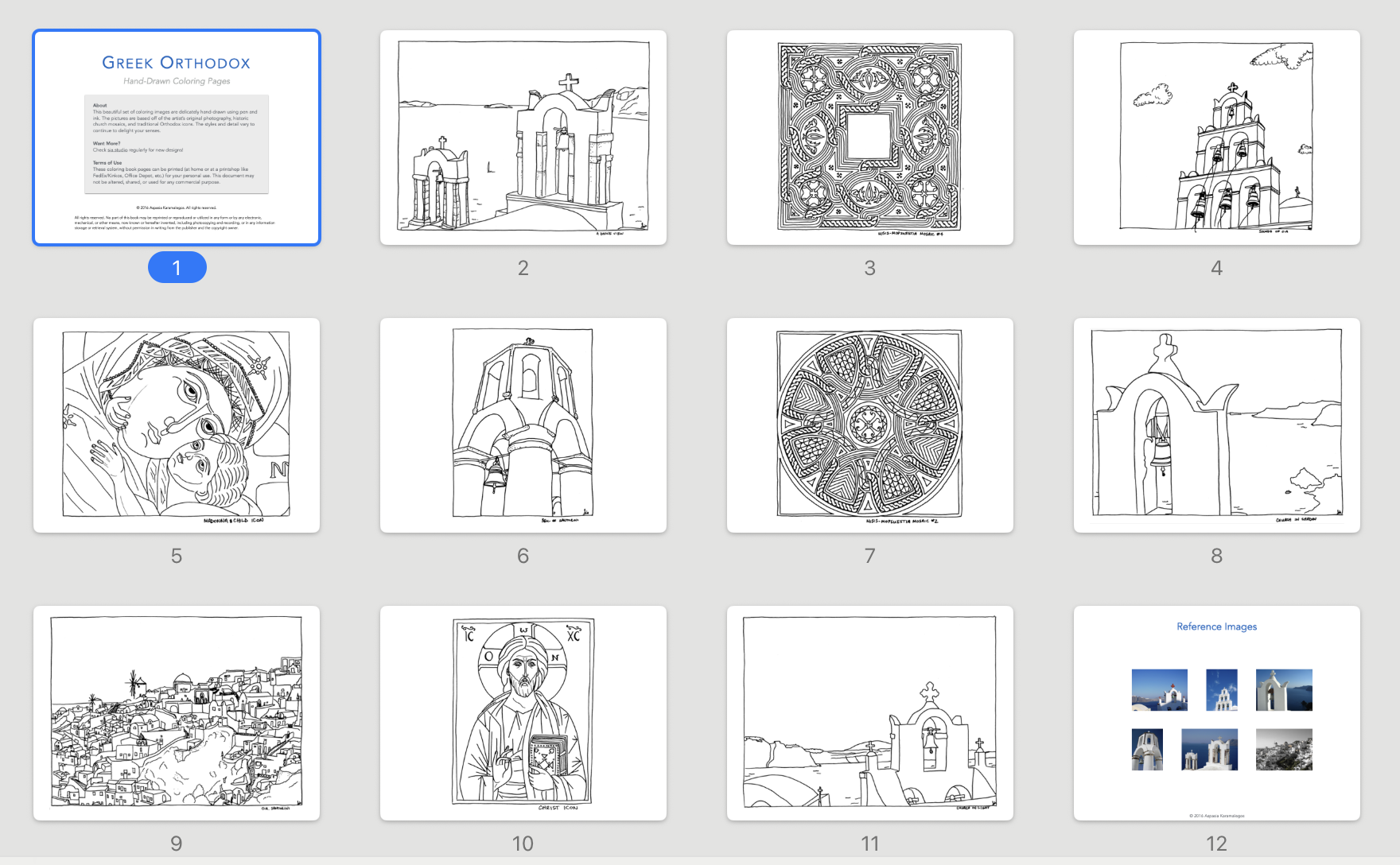 Greek Orthodox Church Coloring Pages – Santorini Churches, Mosaics & Icons (PDF)
