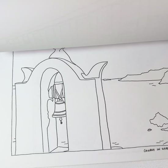 Journey through Greece with colored pencils in hand. This 40-illustration, hand-drawn coloring book brings to life the architecture, mosaics, and frescoes of Greece — inspired by ancient sites, Orthodox icons, and the artist’s own photography. Rendered in delicate ink and offered on single-sided, letter-size (8.5 × 11″) pages, each illustration invites you to slow down and color at your own pace. The top-bound format accommodates both right- and left-handers and makes it perfect for travel — in cafes, on planes, or anywhere you’re inspired. A thoughtful gift for travelers, history lovers, or anyone drawn to the soulful beauty of Greece.